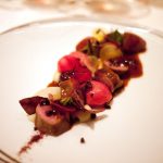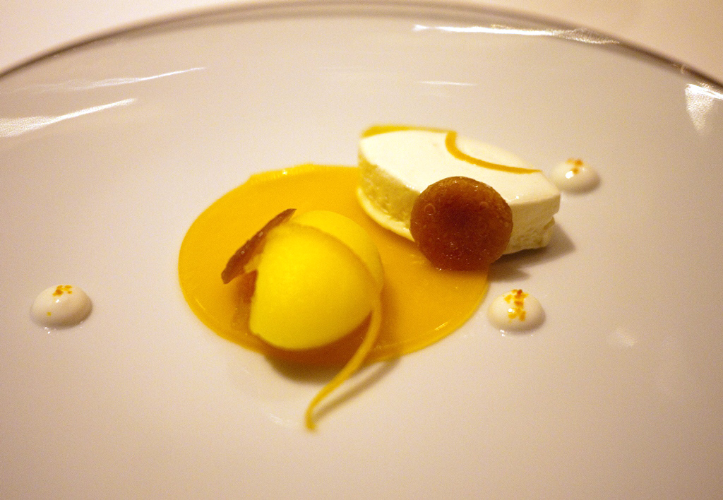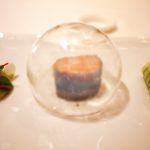 The fish course brought another dimension to my experience as the confit of salmon was enclosed by smoke! Once the cover was removed, we were surrounded by a sensational smokiness, a lovely fragrance to accompany the Tasmanian salmon, which had a remarkably creamy texture. The meal continued with more signature dishes. Although I usually prefer my seafood to be simple, I was impressed by how Chef Ekkebus managed to incorporate many intense flavours on the same plate without sacrificing the originality of the seafood. The arrangement of red amadai, fennel, orange, and potato with a powerful bouillabaisse sauce, or the composition of scallop, ham, and pumpkin gnocchi with a deep truffle sauce – it was these complex yet well balanced seafood courses that captured the true beauty of Amber!