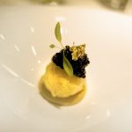 Image 5: On to the first solid course of the evening and the caviar, crispy oyster milk and bottarga was an immediate success. I was not aware that China produced black caviar and this particular one was sourced from Heilongjian in the Northeastern region. The bite size morsel was beautiful in flavour and the tuna bottarga (cured roe of the tuna) inside the creamy base was not overpowering despite bringing a distinct note to the dish. Combined with the crispy texture and flavour of the oyster milk, this dish had a lasting aftertaste of the sea.