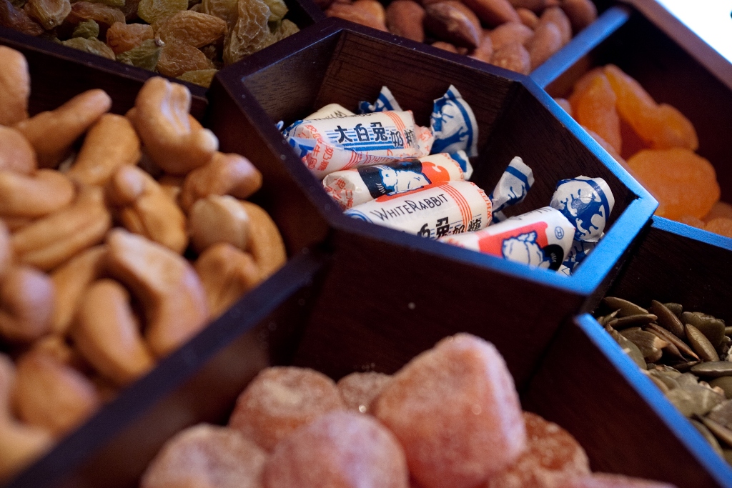 Image 8: A traditional Chinese snack box on the table. We were explained that since guests don't always arrive all at once so..