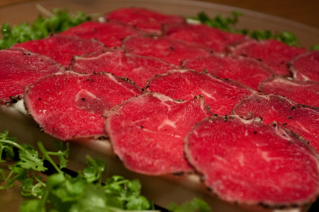 Image 16: Let the meal begin! They have prepared a set of four cold plates for us. The first up was a beef carpaccio. Raw beef in China?! This country is not known for premium beef so I thought it must be a bad start.