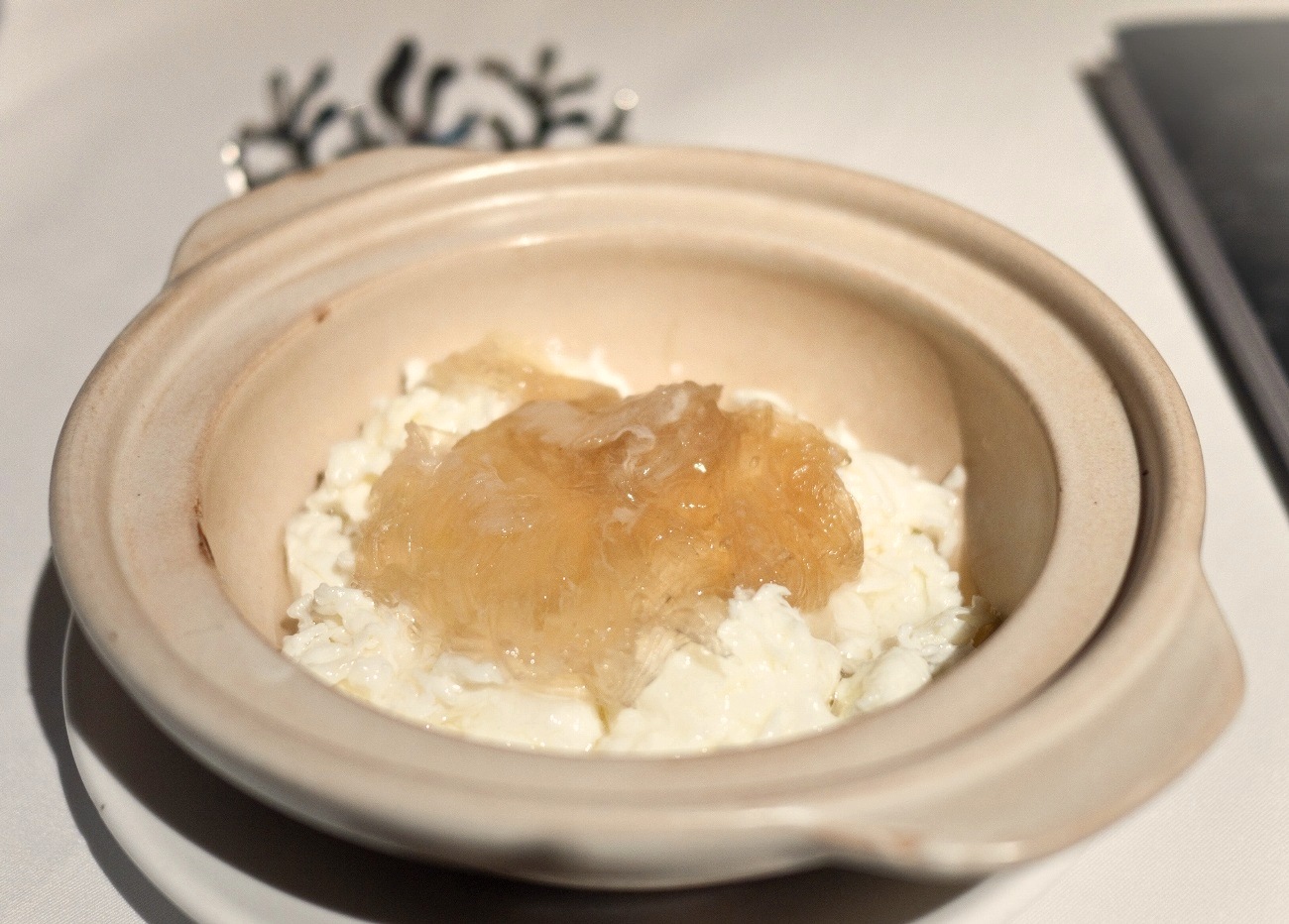 Image 4: The multi-course set menu all had a shark's fin soup; the main differences among the menu choices were the quality of the fin, and also the expensive ones had an abalone course and a bird's nest dessert. We went for the cheapest menu as we were not prepared to spend over USD$1000 on an abalone.