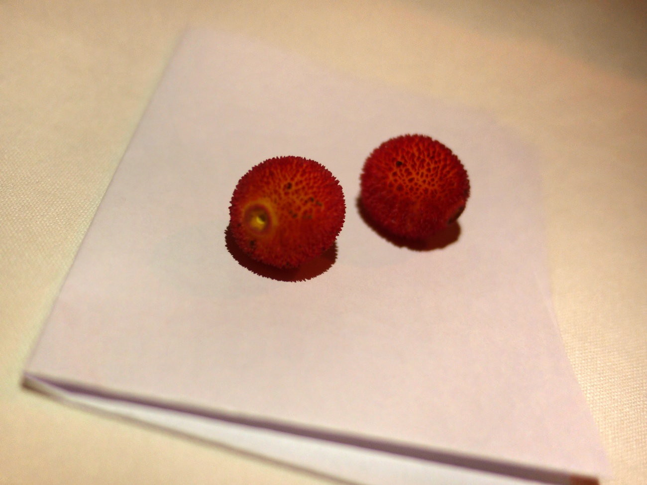 Image 29: This was a saviour; finally something not bitter! Local fruit in season resembling wild strawberry. It tasted great! I guess after that many bitter courses, anything that was not bitter would be great!