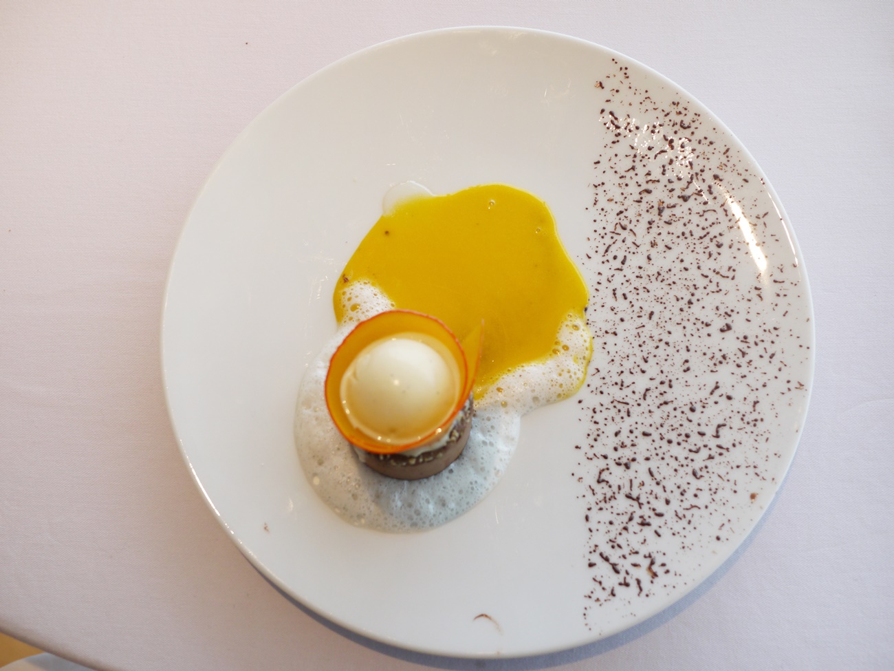 Image 45: They then led us to the lounge area for tea and a chance to meet the head chef of the restaurant. The manager also brought us a shot of pear and passion fruit smoothie as our last petit four. A fruity finish to another memorable meal…