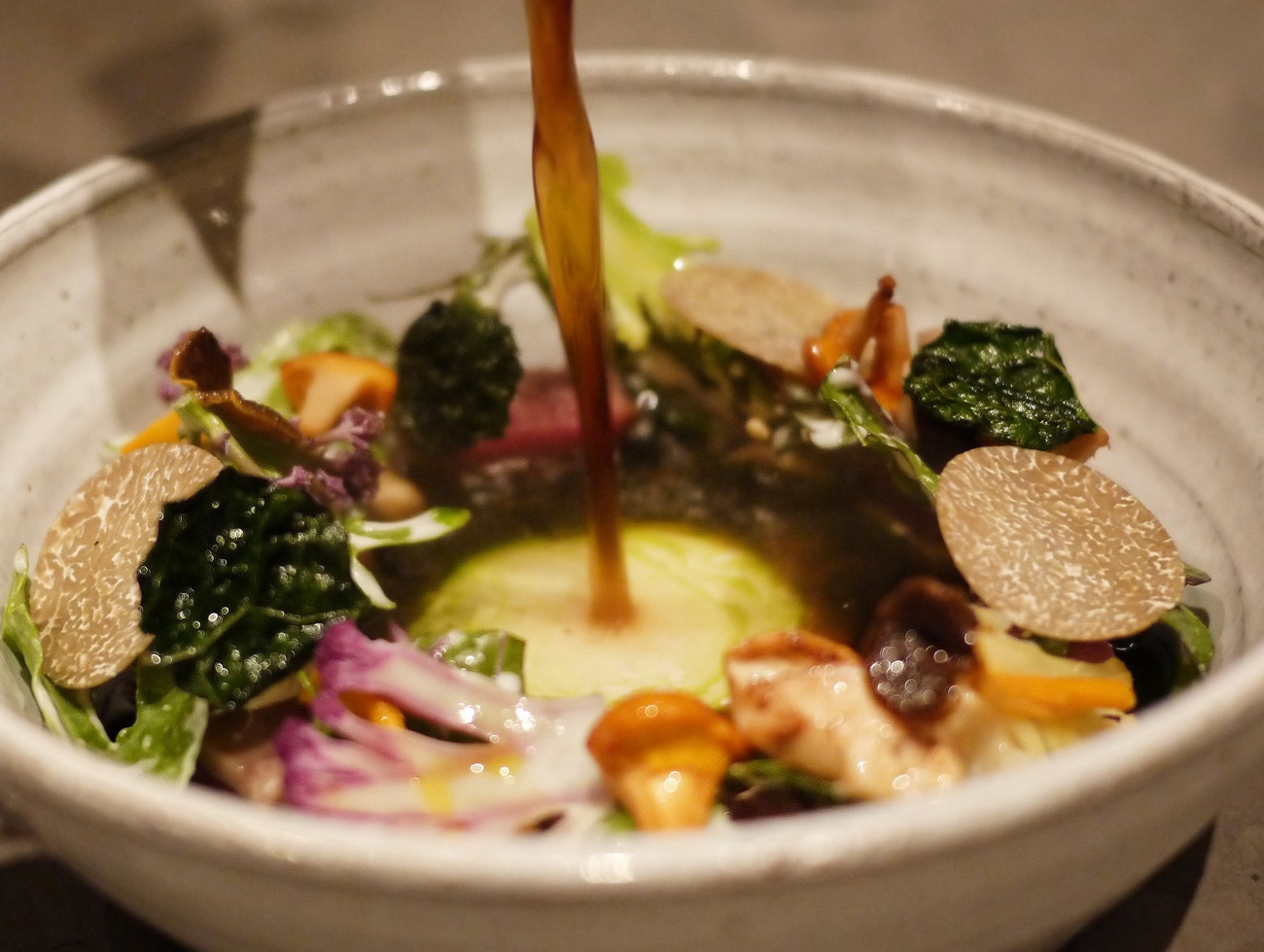 Image 27: "Hot pot" of autumn lamb, wild mushrooms, cabbage salad with roasted cauliflower & truffle bouillon