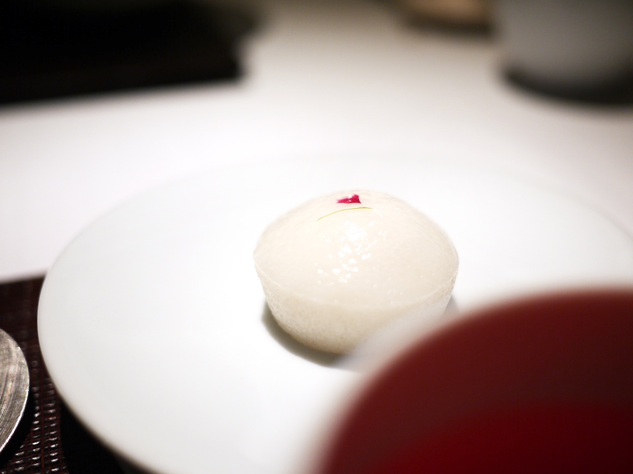 So, what of service? Well, sadly, this is yet another of those places, so common in Asia, where the service team simply had no appreciation of what a fine dining experience should be. On three occasions, we had to ask them to slow things down a bit – and even then it was pretty damn fast. The third course was served when we still hadn’t quite finished our second course! I pointed out to the manager that we’d ordered the wine pairing, so we needed time between courses to finish one wine before the next arrived (most of which were actually spirits ranging from 20% to 45% alcohol!) But it had no effect – the staff were much too worried about not going home early. In fact, the sommelier and manager disappeared from scene way before 9pm. By the time the fifth course arrived (only 45min into the meal!), I was just finishing my second glass of liquor – and still had half of each glass from each of the other courses to drink!