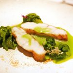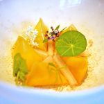 As to the meal itself, the tasting menu isn’t extensive, as the emphasis is very much on quality rather than quantity. First up was a refreshing amuse bouche of chilled verbena and geranium broth, together with a yoghurt-filled ball which burst in the mouth. The remainder of the meal consisted of classics of the region, with some imaginative combinations. For example, a traditional ravioli course of Berlingots stuffed with Gruyere was served in an innovative hazelnut and mushroom broth – I couldn’t get enough of the finely made pasta with warm melting cheese in the centre, and the nutty earthiness of the broth. Then there was white asparagus and razor clam (never seen this veggie-seafood combination before) served in a liquorice and soba cha (Japanese roasted buckwheat tea) broth. A brilliant textural contrast! In fact, this Japanese undertone continued throughout the meal, with dishes such as Scottish langoustine served in a cinnamon and kumbo (Japanese kelp) broth with beetroot and raspberry. The seafood was precisely cooked with a touch of rawness in the centre, and I particularly enjoyed the umami which had a touch of fruitiness from the broth.