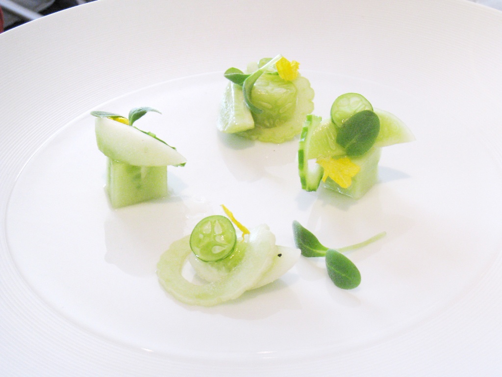 Image 31: An arrangement of cucumber infused in ginger ale and candied lemon in limoncello! The balance of freshness, fruitiness, and alcohol were finely judged. What an exquisite combination!