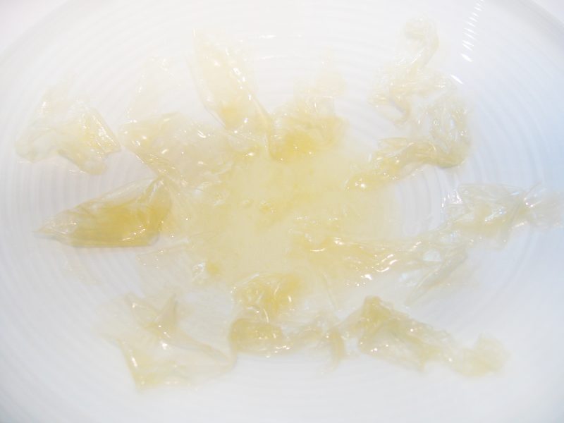 Our seventeenth course was chef Ferran’s interpretation of gin-tonic.A small piece of cucumber was soaked with gin-tonic, garnished with few diced lemon peel and finished off with a rose slush. It was refreshing with a sharp note as the bitterness of the peel submerged with the bitterness of tonic. Next, “Que bearn” egg, composed of egg yolk, frozen cream and shallot, was the worst dish so far. It was dominated by a strong vinegar flavour, quite disgusting! From the name of this course, many people suspect that this dish represents a “deconstructed Béarnaise sauce”, a French sauce composed of butter, egg, shallot, and vinegar. This dish illustrated that combining those ingredients would resulted in a superb sauce but unpleasant if each ingredient is consumed separately.