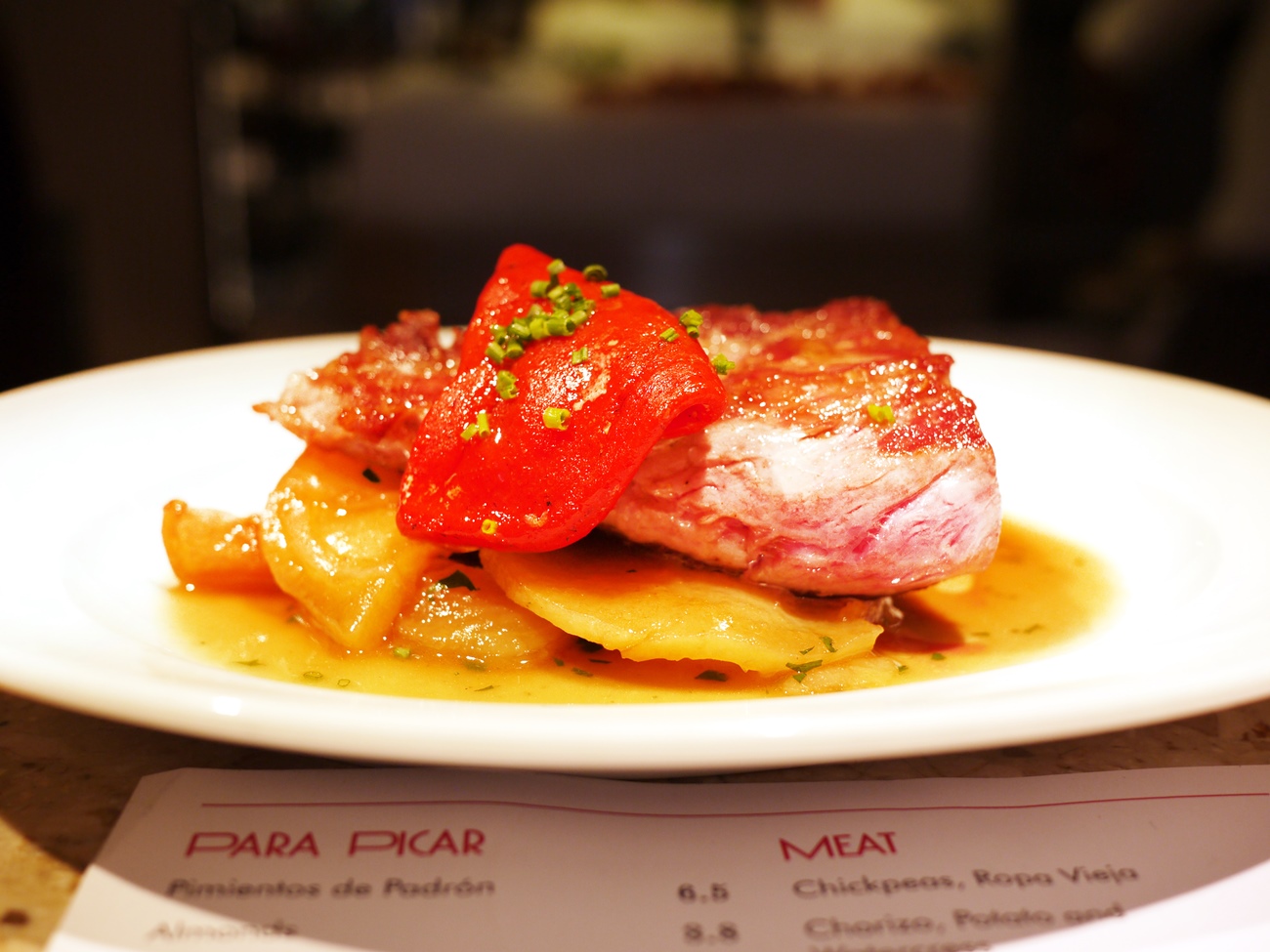 When it comes to main courses, they receive fresh seafood 6 times a week, so don’t forget to check the board for what’s available. Personally, I always go for Octopus, which is often on the menu. It’s super-tender, grilled, cut into bite-sized pieces, garnished with chopped chive and served with capers and olive oil. Deeelicious! If you prefer meat, well, you’re in a Spanish restaurant, so, in my view, you’d be mad not to go for Pluma Ibérica, a shoulder cut of Ibérico pork. They simply let it sizzle on the grill until it has a crispy surface and is pink in the middle. It’s juicy and flavourful.