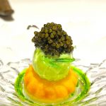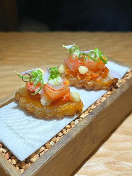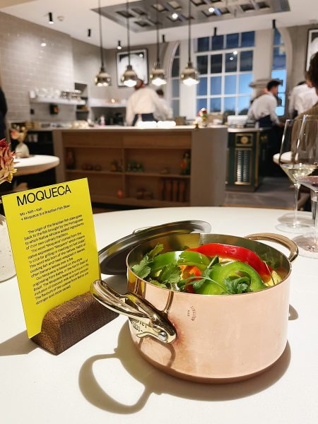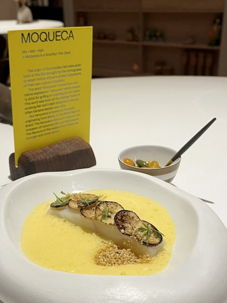 The moqueca was a wonderful homage to the Brazilian classic, showcasing perfectly cooked turbot, although the farofa felt a touch too firm. The Miguel Vergara Angus sirloin was another highlight, accompanied by addictive lobster rice and a vibrant chimichurri. The menu also featured the classic “Romeo & Juliette” combination — cheese and guava for anyone who has been to Brazil. Desserts delivered elegant indulgence, with a pistachio cachaça baba topped with N25 caviar providing a memorable finish to the meal.