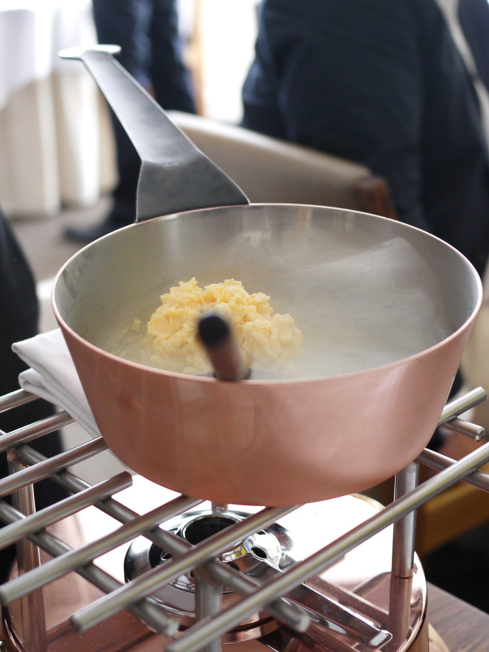 Image 39: As we got near the end of the meal, I requested a course that I had before, but which is no longer on the menu – the full tableside version of the Nitro-scrambled egg and bacon ice cream. Freshly made, it demonstrates how to cook without heat!