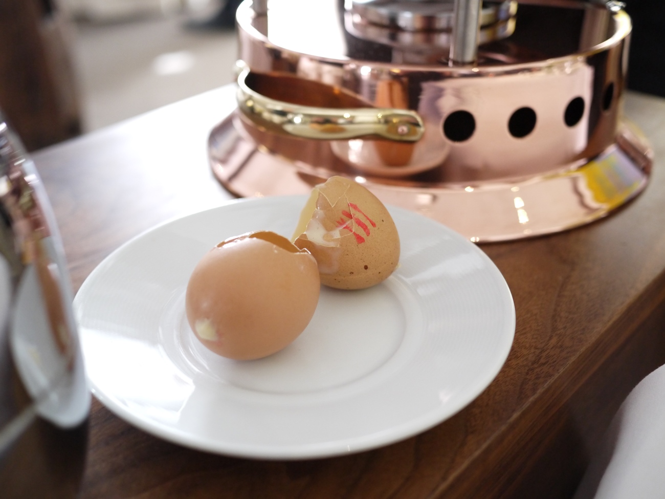Image 45: Of course, there’s a trick involved, which many diners don’t cotton on to – which is that you need an ice cream mixture, not just a raw egg. So the egg used wasn't really an egg! Instead, they make a small hole in the shell and replace the inside of the egg with ice cream mixture. Then, at the tableside, all that’s needed is to add the Liquid Nitrogen. Genius!