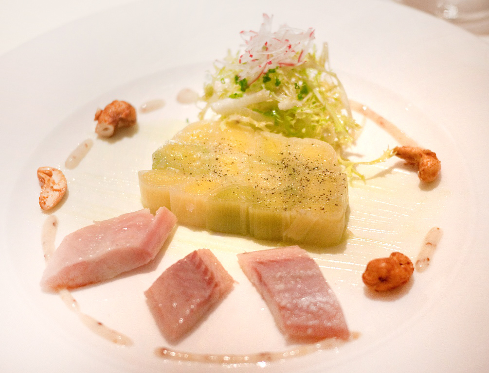 Image 6: And now, a Pierre's classic starters - leeks with smoked eel. Slight salty by itself, but perfectly matched with the tender leek terrine. The cashew nuts added a nice crunchiness.