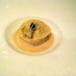 Image 7: Finally, time for our Gourmand Menu. A single tortellini stuffed with lobster meat resting in lobster bisque. What a tiny first course!